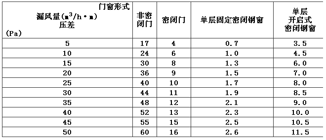 表7 圍護(hù)結(jié)構(gòu)單位長(zhǎng)度縫隙的滲漏風(fēng)量