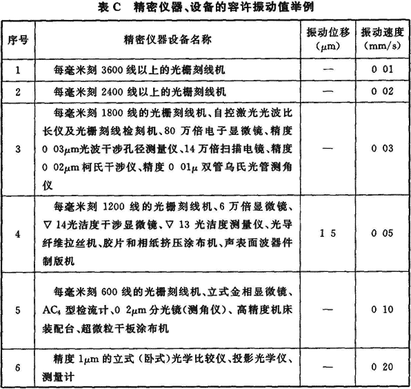 附錄C 精密儀器、設備的容許振動值舉例: