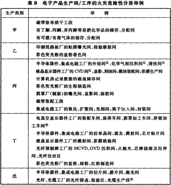 附錄B 電子產(chǎn)品生產(chǎn)間/工序的火災危險性分類舉例