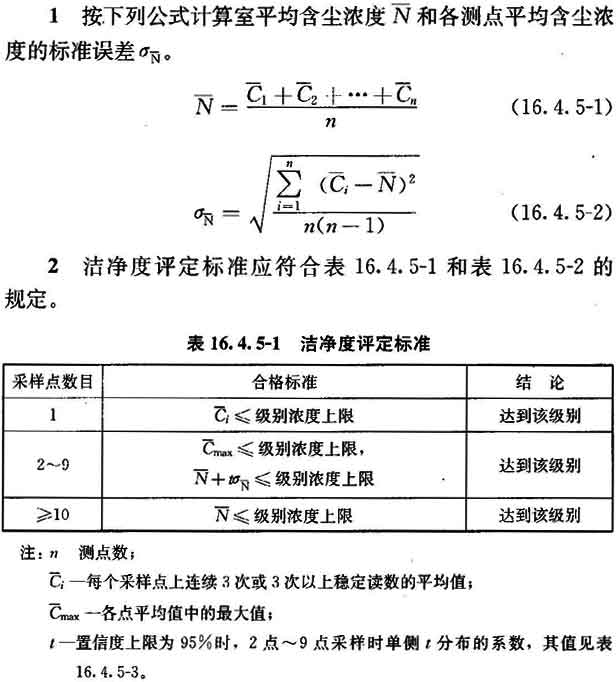 16.4.5 空氣潔凈度級別應(yīng)按附錄E檢驗(yàn)微粒計(jì)數(shù)濃度,然后按以下程序計(jì)算出空氣潔凈度級別并評價(jià)。