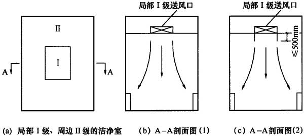 時(shí),背景環(huán)境可不另設(shè)送風(fēng)口。這一方法已被現(xiàn)行國(guó)家標(biāo)準(zhǔn)《醫(yī)院潔凈手術(shù)部建筑技術(shù)規(guī)范》GB 50333所采用,也被俄羅斯醫(yī)院標(biāo)準(zhǔn)所采用。需要注意的是本條款不適用于自循環(huán)的送風(fēng)末端(如FFU、層流罩等),當(dāng)局部Ⅰ級(jí)采用自循環(huán)的送風(fēng)末端時(shí),背景環(huán)境宜另設(shè)送風(fēng)口。