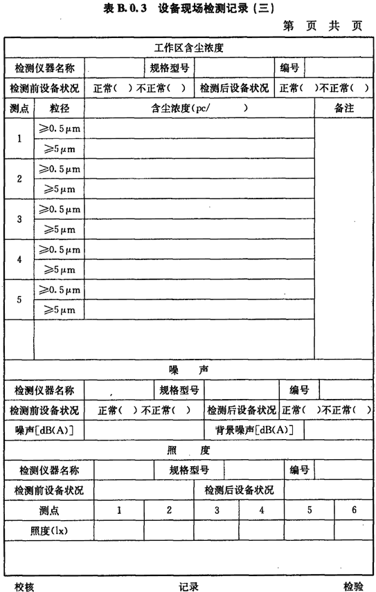 B.0.3 工作區(qū)含塵濃度、噪聲、照度的檢測應(yīng)按表B.0.3進(jìn)行記錄。