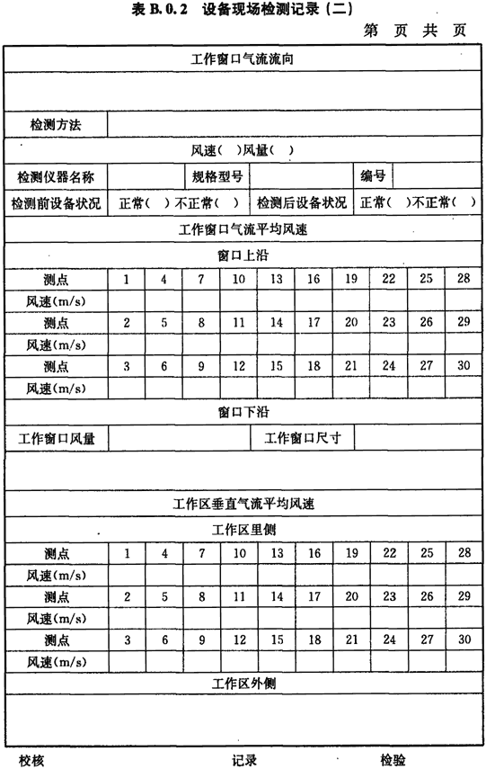 B.0.2 工作窗口氣流流向情況、風(fēng)速(或風(fēng)量)的檢測應(yīng)按表B.0.2進(jìn)行記錄。