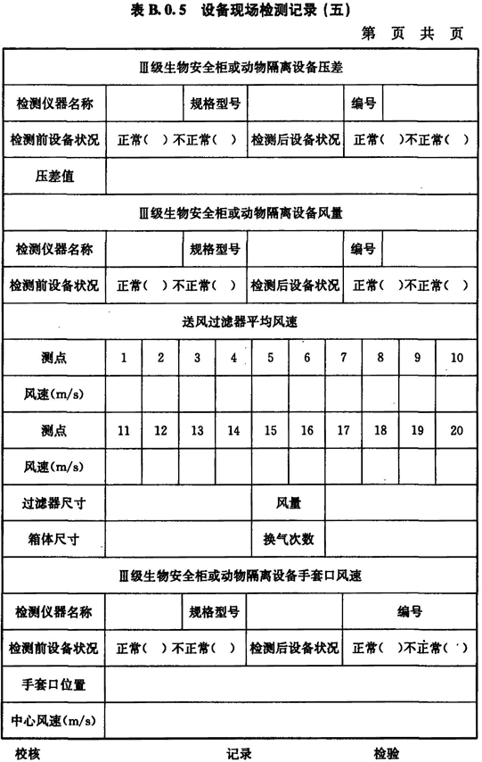 附錄B 生物安全設(shè)備現(xiàn)場檢測記錄用表
