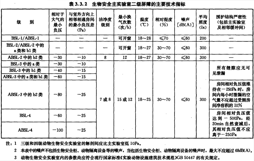 3.3 生物安全實驗室的技術(shù)指標