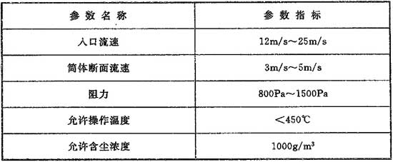 7.2.6 旋風除塵器可作為預除塵器使用。旋風除塵器計算參數(shù)應符合表7.2.6的規(guī)定。