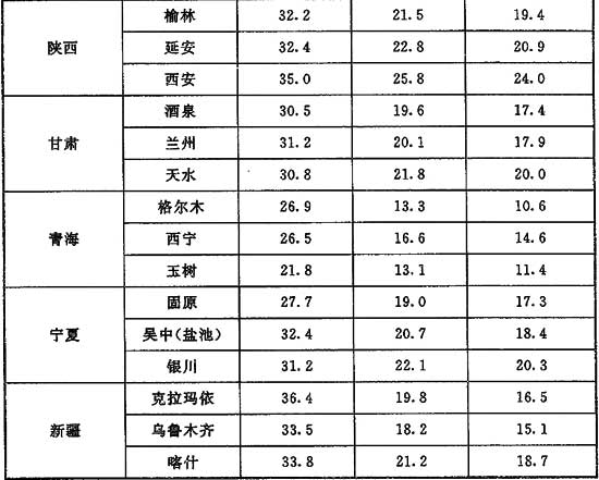 5 中國河流年均水溫的地區(qū)分布形勢大體與氣溫一致。河流年均水溫略高于當地年均氣溫,差值一般為1℃~2℃。但當高山冰雪融水在河流補給中占主要地位的地區(qū)則相反,年均水溫低于氣溫1℃~2℃。中國河流水溫的年內變化過程,大部分地區(qū)均為在春、夏增溫階段,水溫低于當地氣溫;秋、冬降溫階段,水溫高于當地氣溫。采用蒸發(fā)冷卻空氣處理方式,冷卻水采用直流式地表水,可降低被處理空氣溫度,此時地表水即為天然冷源。